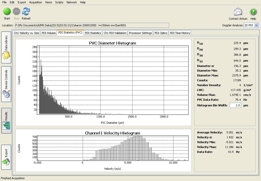 2 Bar下噴嘴顆粒度數(shù)據(jù)