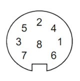 風(fēng)速風(fēng)向儀底部有一個(gè)8 腳防水插頭,用以通過(guò)屏蔽電纜線連接外部電源和通信接口。