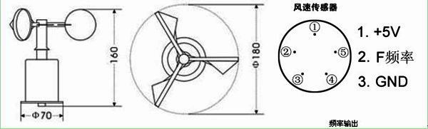 風速傳感器的感應元件是三杯風組件,由三個碳纖維風杯和杯架組成。轉換器為多齒轉杯和狹縫光耦。當風杯受水平風力作用而旋轉時,通過活軸轉杯在狹縫光耦中的轉動,輸出頻率的信號。